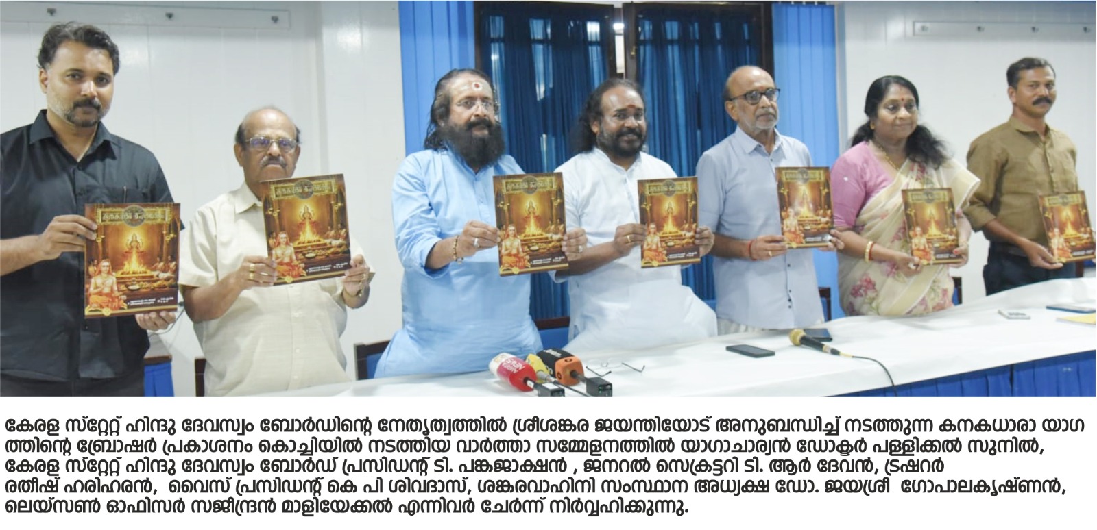 കൊച്ചി : ശ്രീശങ്കര ജയന്തിയോട് അനുബന്ധിച്ച് ആദിശങ്കരാചാര്യര് രചിച്ച പ്രശസ്തമായ കനകധാരാസ്തവം എന്ന ശ്ലോകം ആധാരമാക്കി, ലോകനന്മയ്ക്കും മനുഷ്യകുലത്തിന്റെ സമ്പത്സമൃദ്ധിക്കുമായി കേരള സ്റ്റേറ്റ് ഹിന്ദു ദേവസ്വം ബോര്ഡിന്റെ
